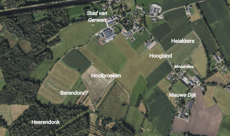 In 1498 worden de gronden beschreven als Hoghelant (Hoogland), Berendonc, Holebroek (Hoolbroeken), Hoefken (kleine hoeve of boerderij) en de Winrixvlaessche. Het is niet duidelijk of met Berendonc wordt bedoeld het nabij gelegen Heerendonk, maar dat is wel zeer waarschijnlijk. Als dit zou zijn, dan zou dit betekenen dat dit stuk land al is afgescheiden van de gemeenschappelijke Heerendonkse gronden ergens in de 13e eeuw. De totale oppervlakte van de hele betalingspost is ongeveer 7 hectare.